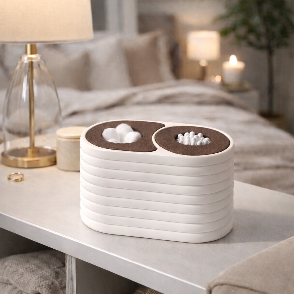 Deixe seu banheiro mais organizado, elegante e funcional com este porta algodão e cotonete premium. Ideal para manter a bancada sempre bonita e prática, trazendo um toque moderno e sofisticado ao ambiente.